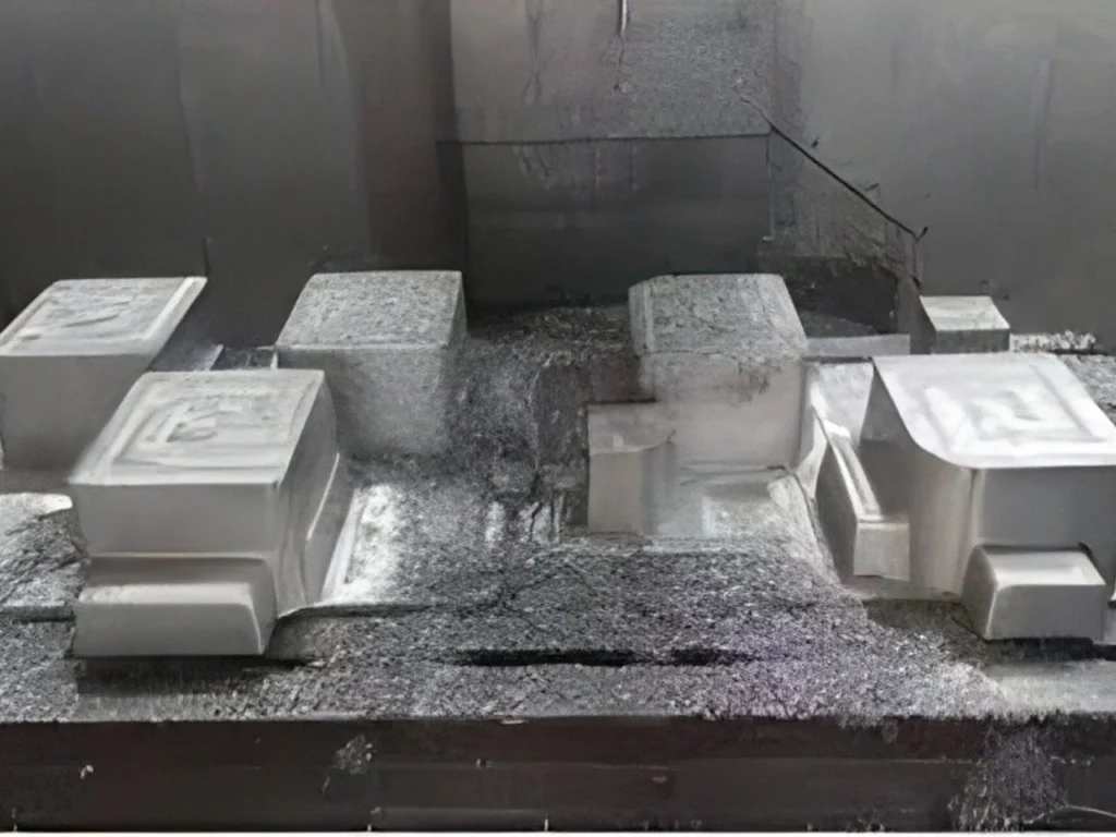 - Rough Machining: Large blocks of steel are cut to size using CNC milling.
