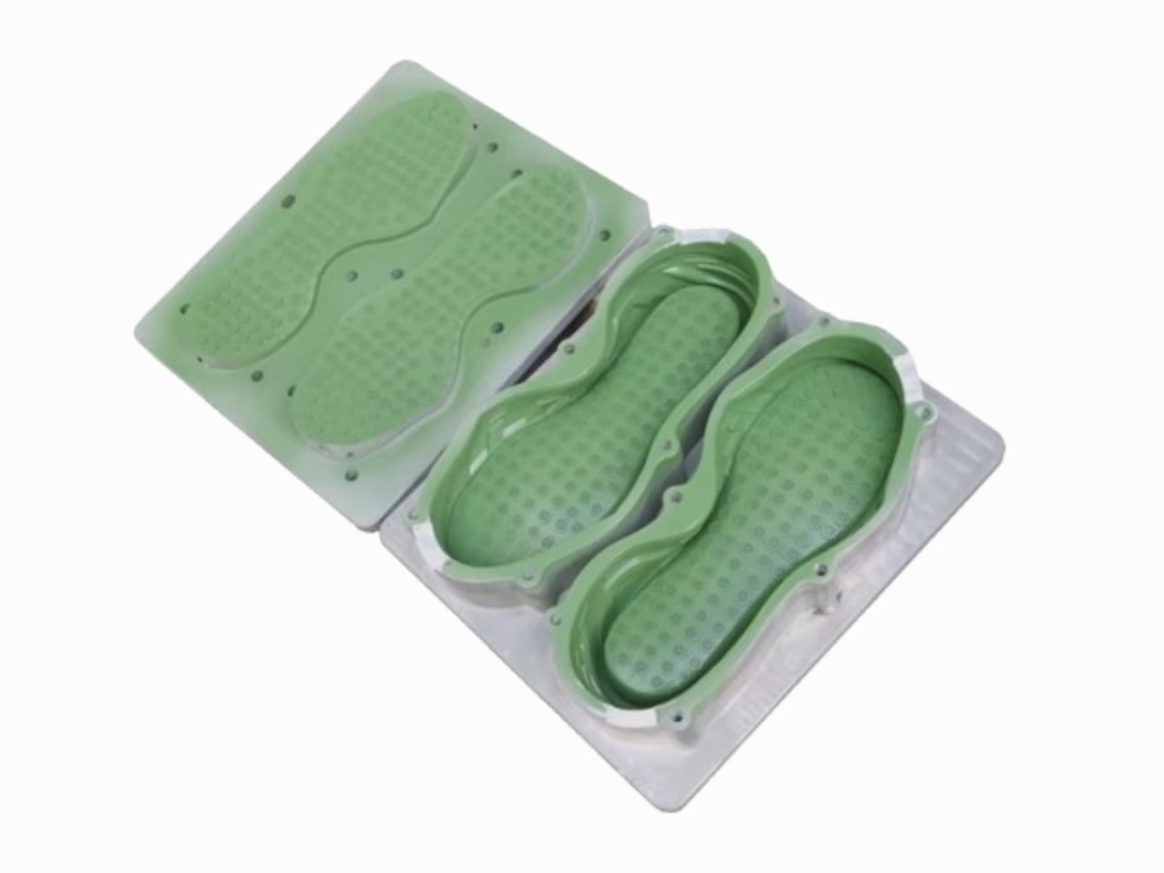 Surface Finish: A high-grade mirror polish (often #A1 or better) is required in the cavity to ensure easy demolding and a perfect sole surface. Any pit or defect will be transferred to every sole.